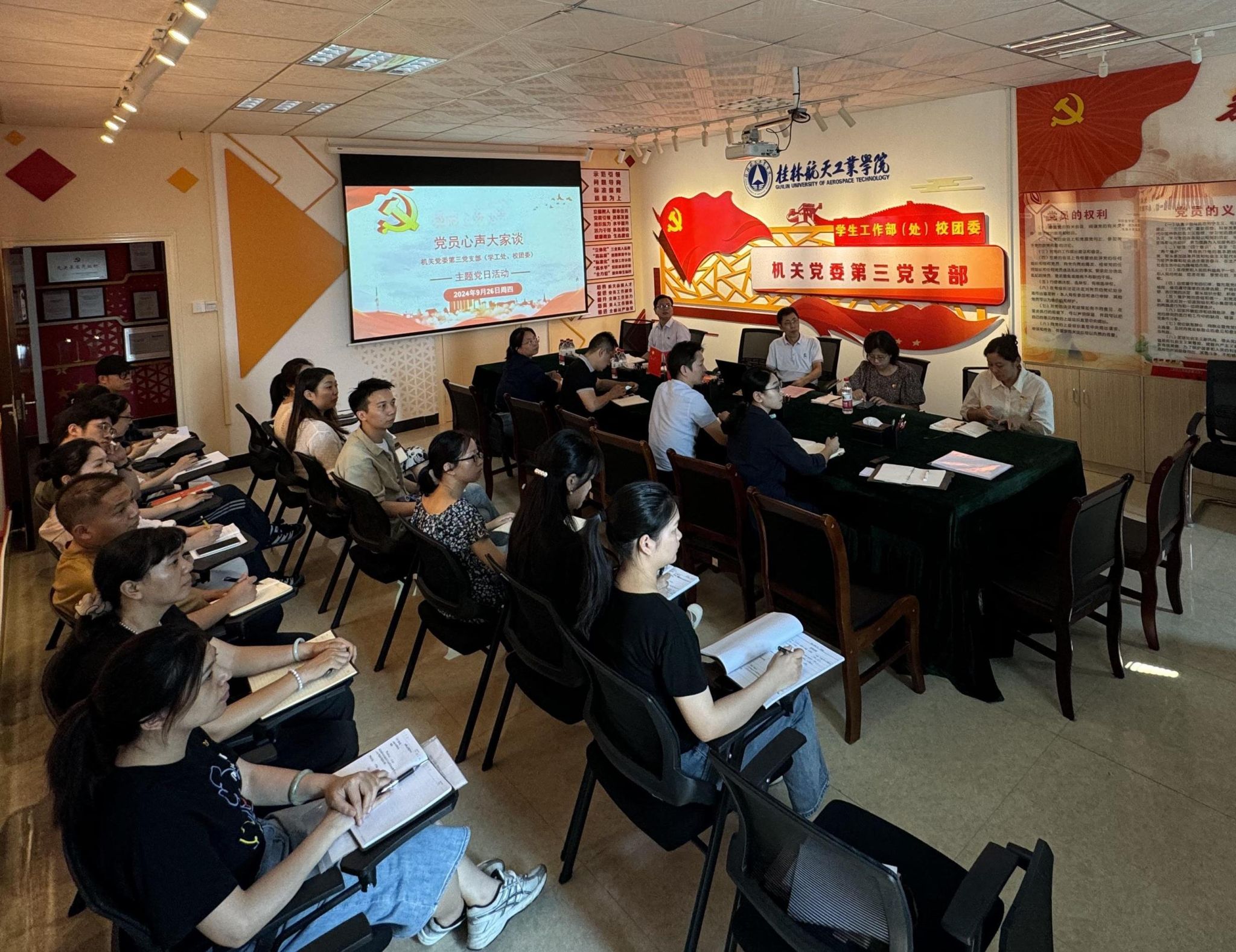 9月26日下午,机关第三党支部在飞天楼533党员活动室开展9月主题党日活动。活动由党支部书记王凯主持,全体党员参加。